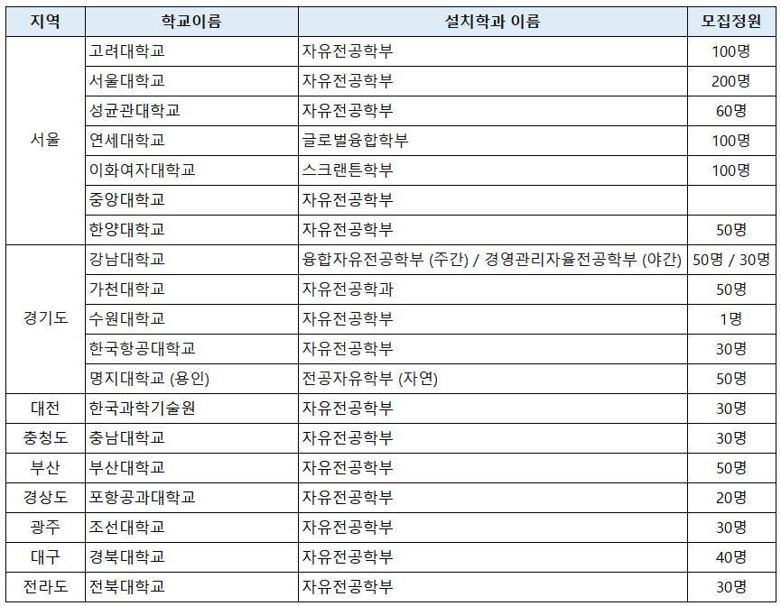 4. 주요 대학별 자유전공학과 현황